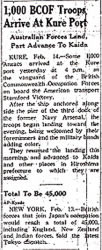 Artículo de la edición del 15 de febrero de 1946 de The Mainichi, anunciando la llegada de las tropas de las BCOF a Japón (© Mainichi Shimbun)